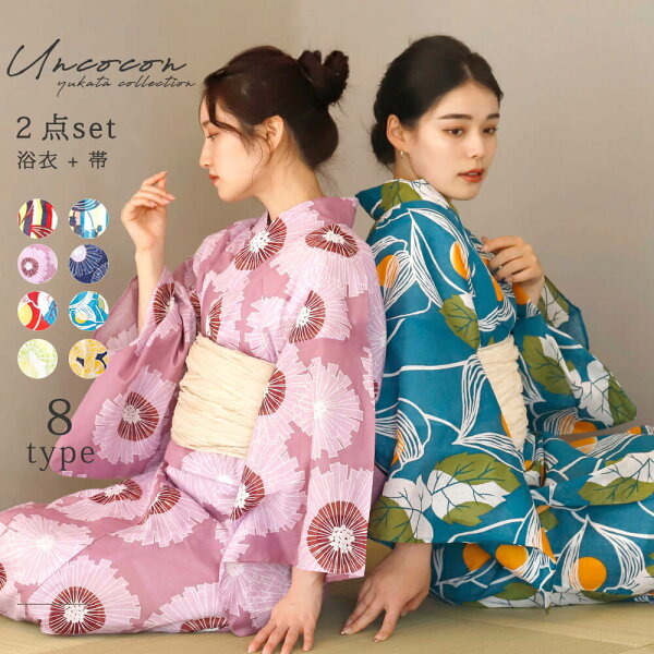 コーディネートはこちら c-1 | c-2 | c-3 | c-4 | c-5 | c-6 | c-7 | c-8 UN COCON - アンココン - 浴衣 セット 大人 レディース ゆかた ユカタ 2点セット 女性浴衣 半巾帯 作り帯 レトロ RETRO 大正浪漫 大正ロマン 今年の夏は... 花火大会・夏祭り・盆踊り! お祭りごとに、浴衣だけを 変えてみるのもオススメです♪