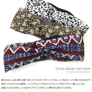 【ネコポス送料無料】ヘアバンド ヘアターバン 幅広 カチューム 3種類 デザイン クロス ツイスト スカーフ ヘアアレンジ 花 フラワー エスニック アニマル レオパード 柄 ヘアアクセサリー レディース 女性 ワンポイント 大人 可愛い カジュアル ブランド ポイント消化 消費