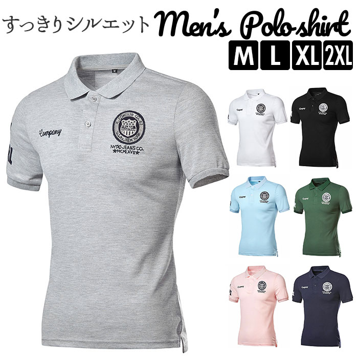 ポロシャツ 半袖 定番 レディース メンズ シャツ 通気性、吸水性 大きいサイズ 黒 白 グレー ピンク ネイビー ブルー 青 通学 通勤 男女 ペア M L XL おしゃれ かっこいい ゴルフウェア ゴルフシャツ 父の日 刺繍
