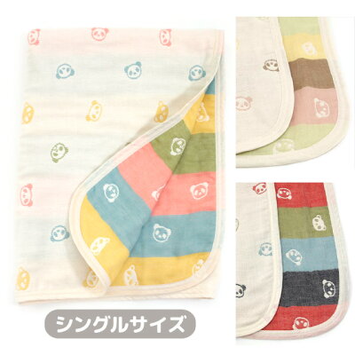 日本製 6重 ガーゼケット おなかけっと シングルサイズ マルチカラー パンダ柄 140×200 綿100 ハンザムココア | 6重ガーゼ 三河木綿 ギフト 名入れ タオルケット 出産祝い 春夏 ベビーケット プレゼント タオル ガーゼ お昼寝 かわいい 刺繍 夏用 ひんやり 冷感 クール
