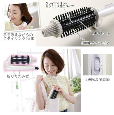 クレイツ ロールブラシアイロン2 ポータブルの特長 ◆ツヤのある柔らかな髪に! ・特殊加工パイプ&ナイロンピン パイプ表面には、髪滑りが良い「クレイツイオン®セラミック」加工を、パイプ部には等間隔で設置した熱板プレートと2種類のナイロンピンを搭載。