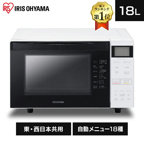 オーブンレンジ フラット アイリスオーヤマ 一人暮らし 18L ヘルツフリー MO-F1807-W 電子レンジ オーブン フラット おしゃれ 東日本 西日本 フラットテーブル グリル 自動メニュー トースター 4枚 キッチン 解凍 温め 簡単[my]